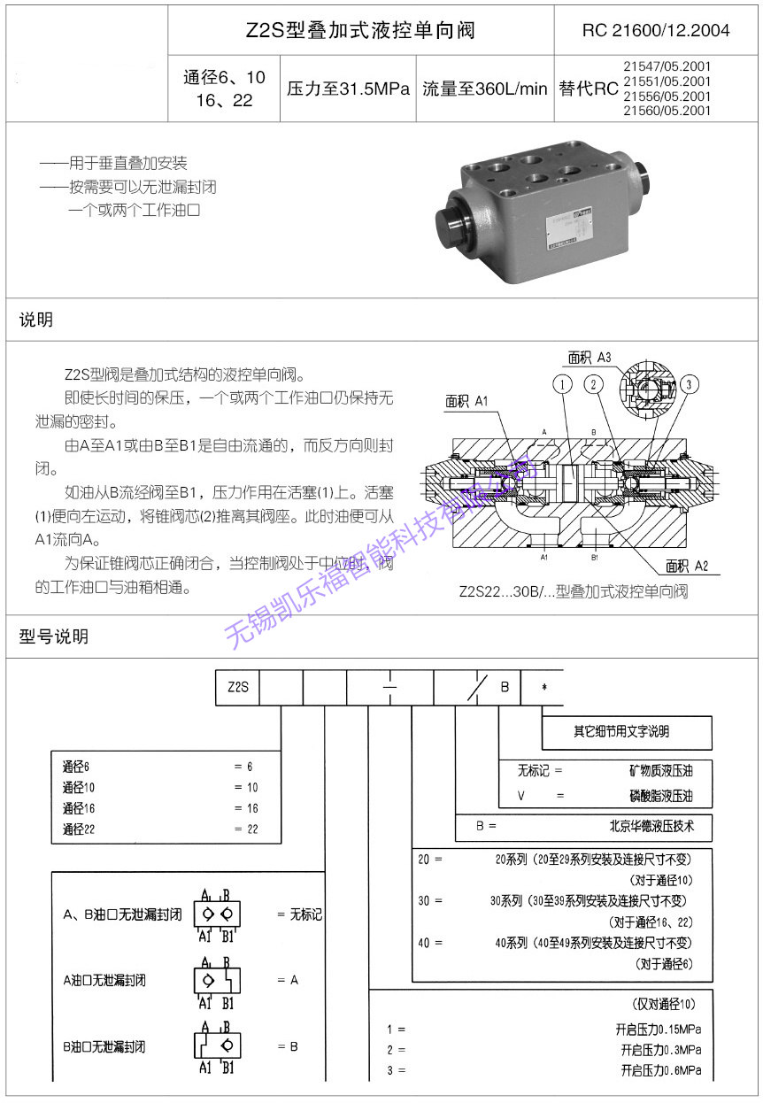 Z2S16 Z2S16A Z2S16B Z2S22 Z2S22A Z2S22B 液控单向阀